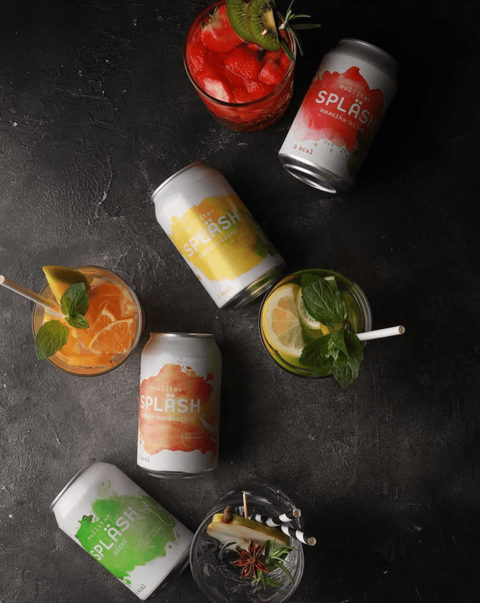 It was important to keep the new design in the lines of the SPLÄSH brand. As a new flavour, it needed to be spotted right away from the store shelves. Simply enough, the packaging used watercolour splashes and a minimalistic illustration of the flavours.