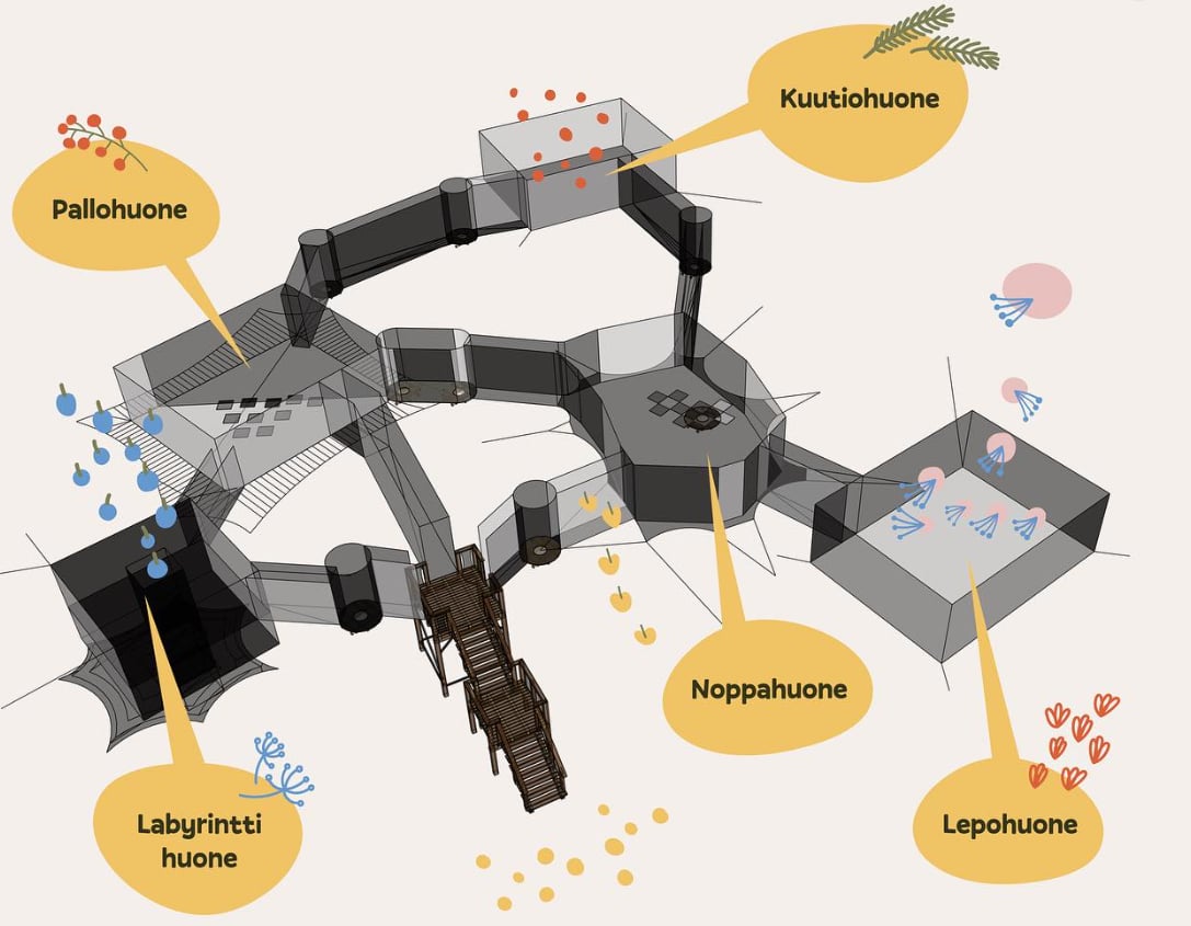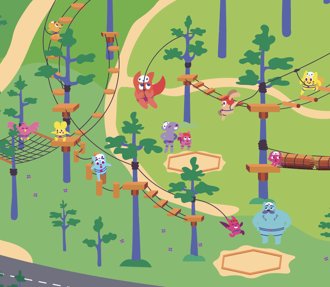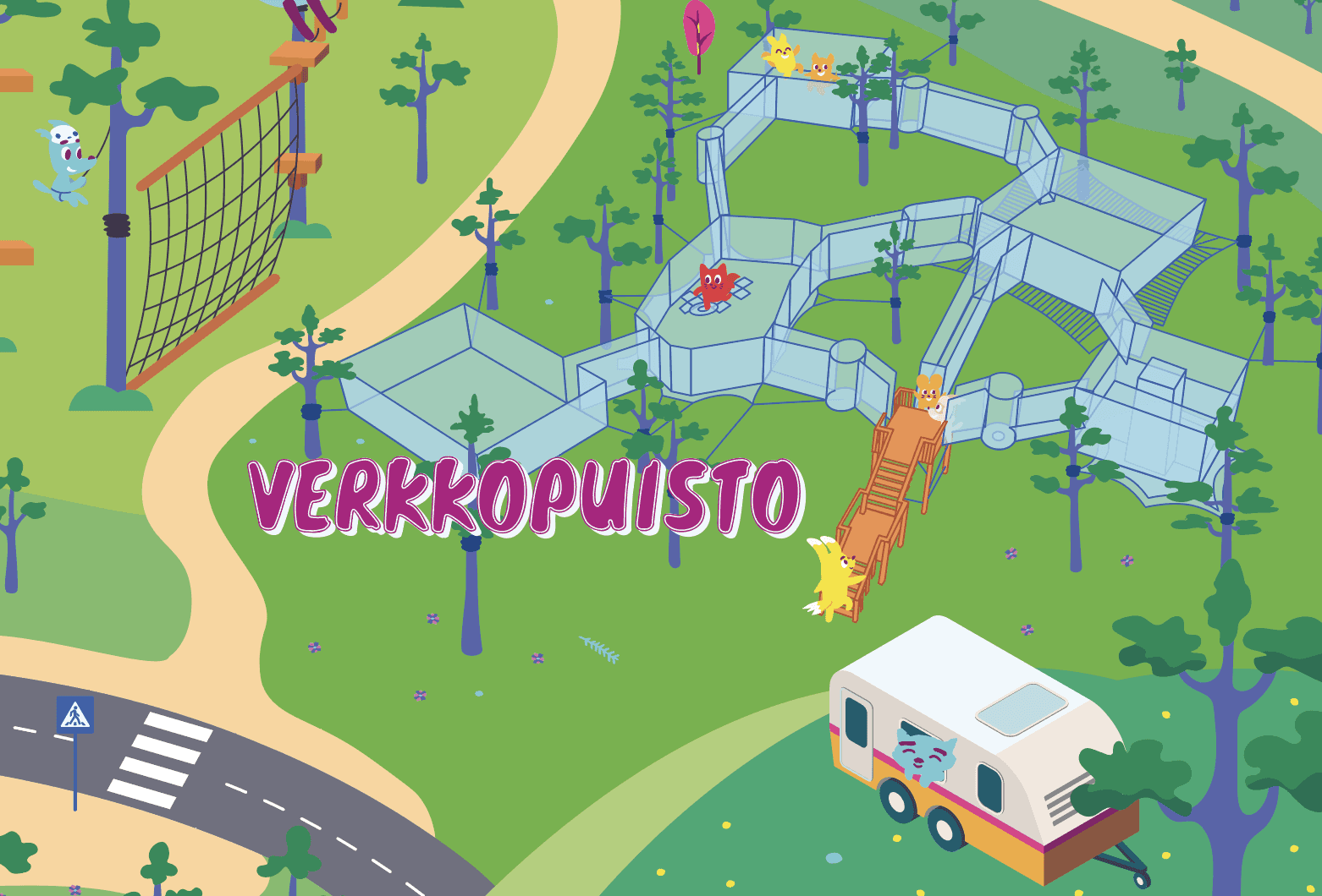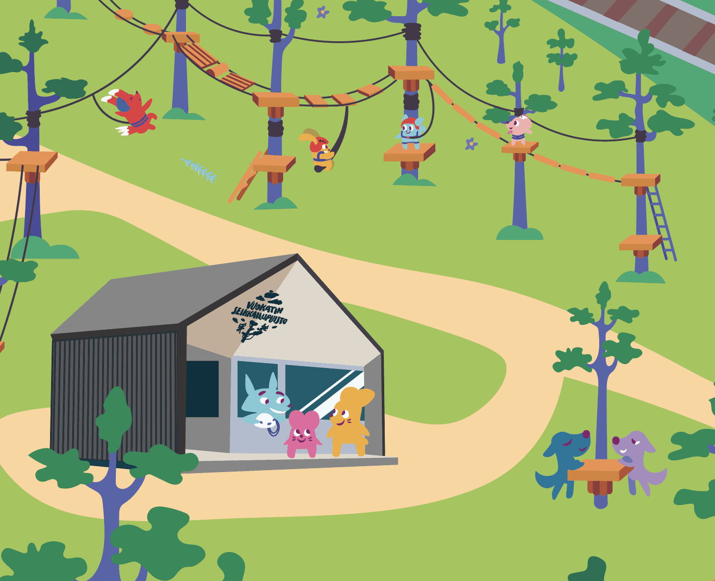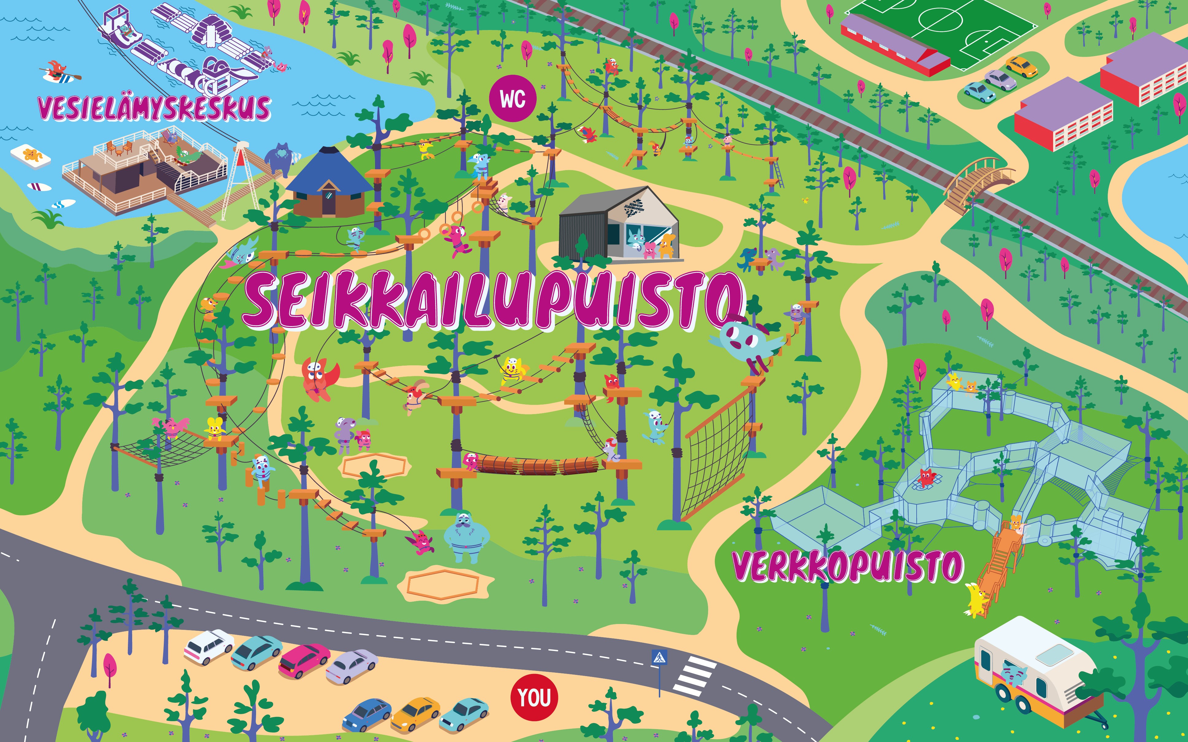 Another creative project for the Adventure Park, located in Vuokatti, Finland. There are a lot of attractions across the campus, and for the visitors to not miss anything in this big area, the park needed a big promotional banner, a map of the adventure park.